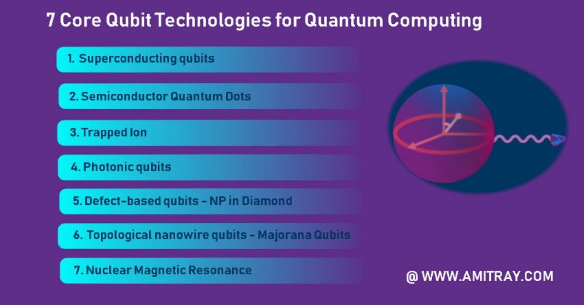 Superconducting materials, semiconductor quantum dots are promising hosts for qubits to build scalable quantum processor. However, other qubit technologies have their own advantages and limitations. The details of the seven primary qubit systems are as below: