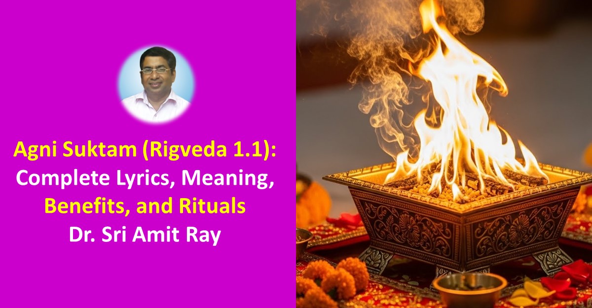 Agni Suktam, also known as Agni Sukta, is the opening hymn of the Rigveda (Mandala 1, Hymn 1). It is addressed to Agni, the Vedic deity of fire, illumination, transformation, and divine mediation. The Rigveda deliberately begins with Agni, establishing fire as the bridge between human aspiration and cosmic intelligence.