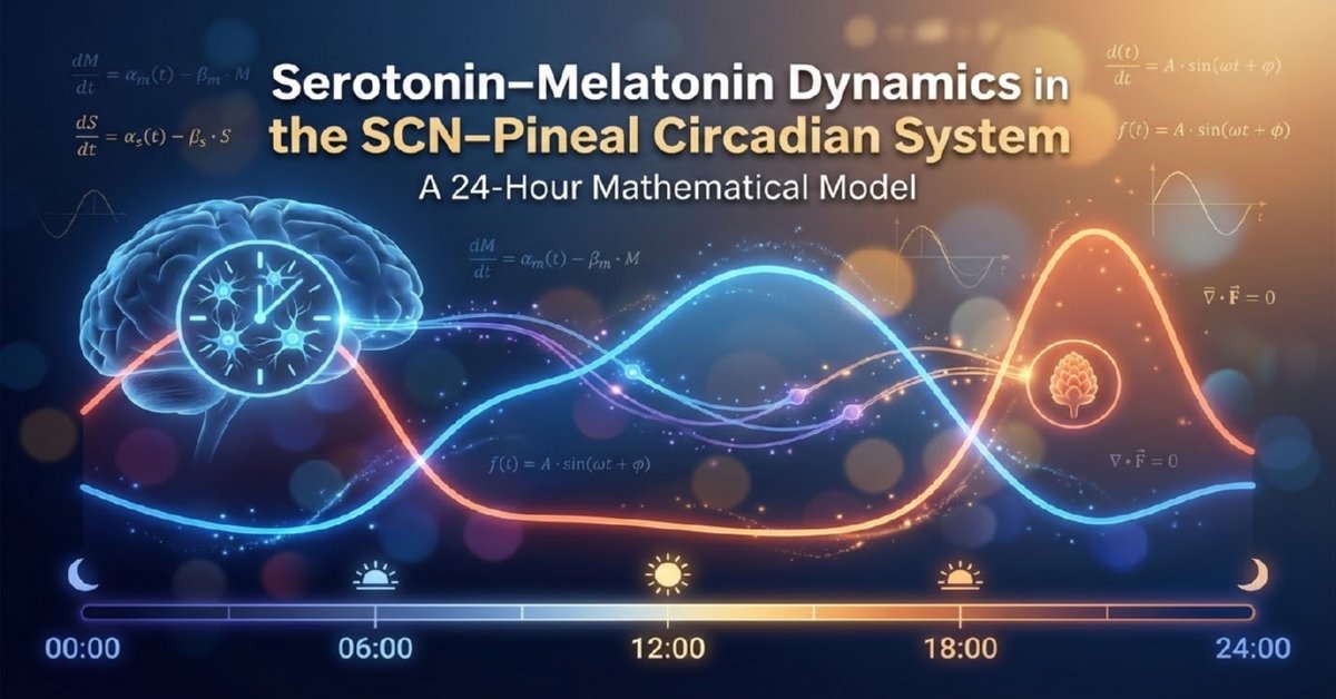 12. Ray, Amit. "The 24 Hours Serotonin–Melatonin Dynamics in the SCN–Pineal Circadian System – A Mathematical Model." Compassionate AI, 1.1 (2026): 6-8. https://amitray.com/serotonin-melatonin-dynamics/.